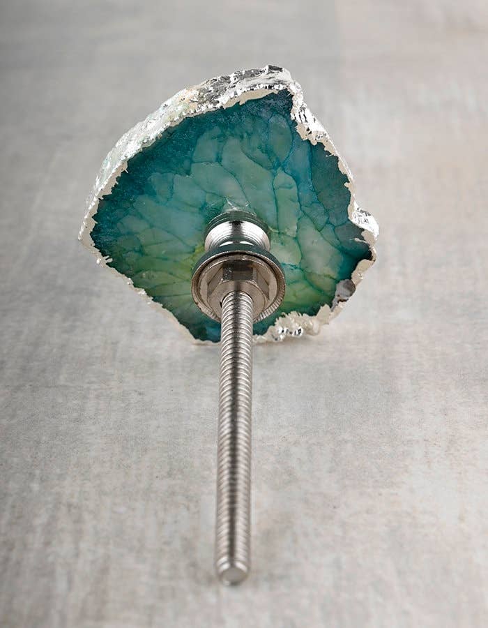 Add a natural touch of elegance to your home with our Sea Green Agate Stone Cabinet Knobs. Each knob is a unique piece of decorative hardware, beautifully handcrafted from real agate stone in assorted shapes. The soothing sea green tones bring a refreshing, organic feel to any space.