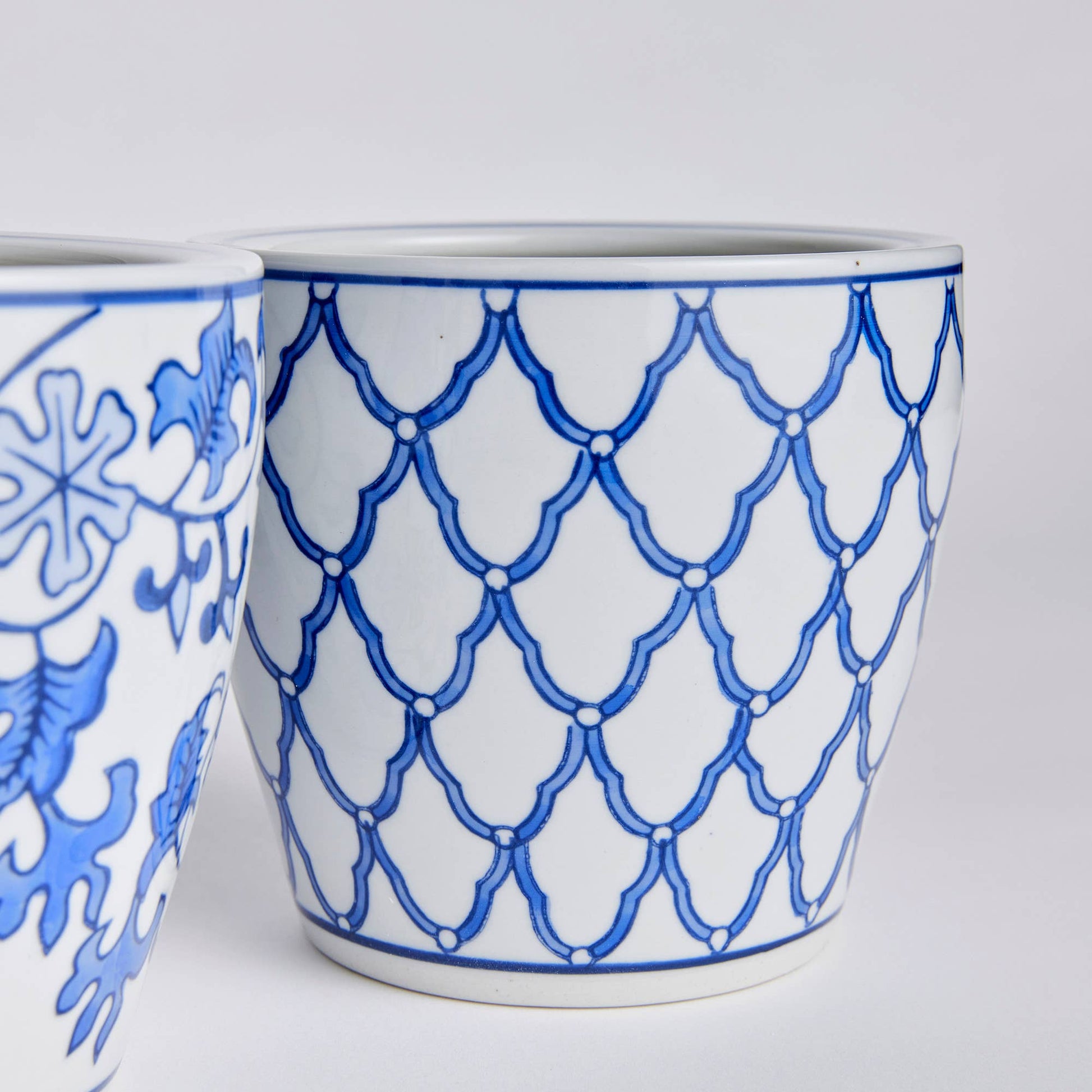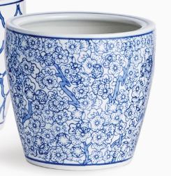 In a mix of classic Chinoiserie patterns, these hand-painted midi planters are perfect for space. From the collection...