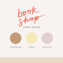 BOOK SHOP A warm, wood-forward fragrance with subtle citrus brightness and an earthy patchouli finish.
