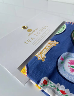 Add a touch of colorful flair to your kitchen, or a thoughtful hostess/housewarming gift! Woven from 100% absorbent cotton and printed with our charming, hand-painted designs, each towel is embellished with contrasting embroidery along the seaming.