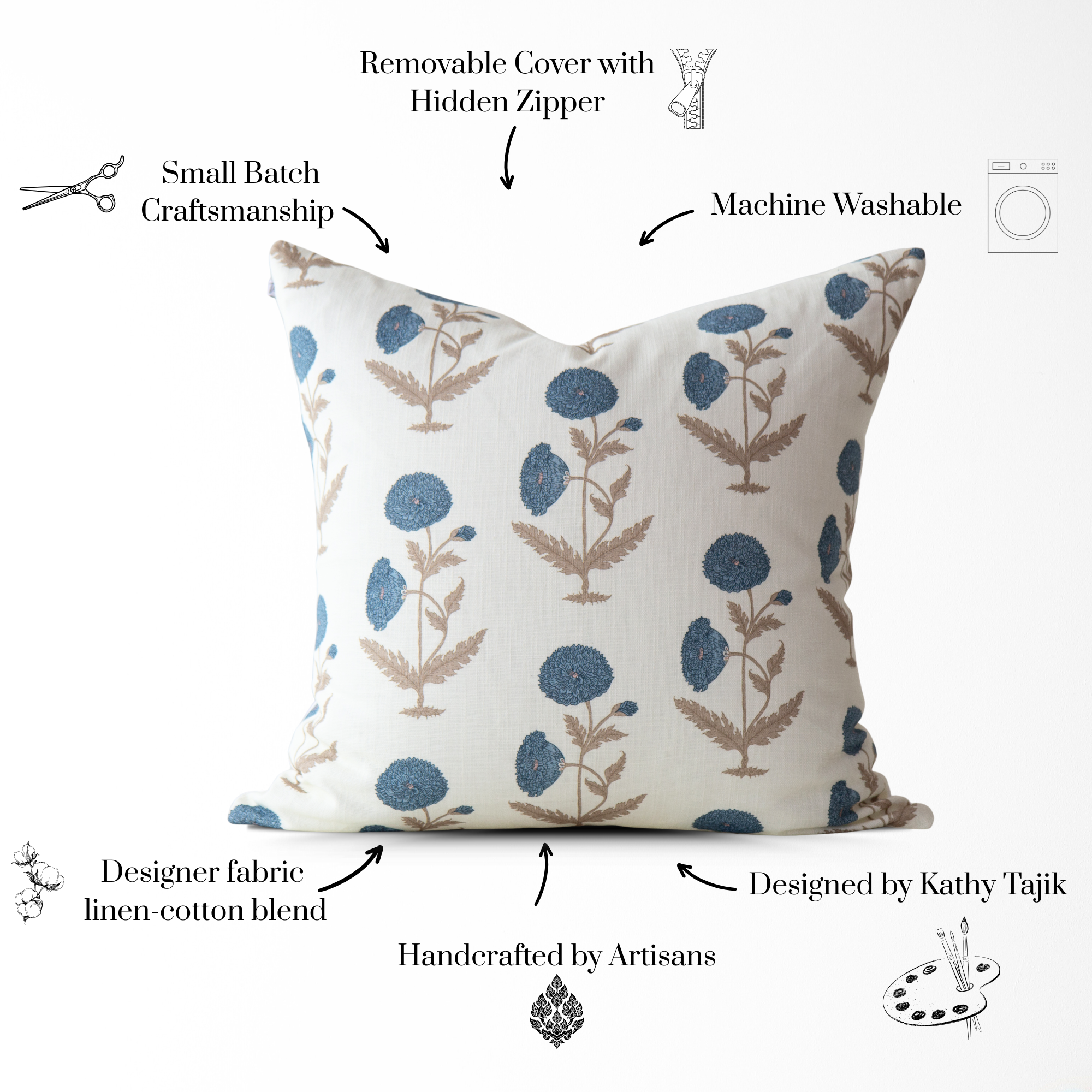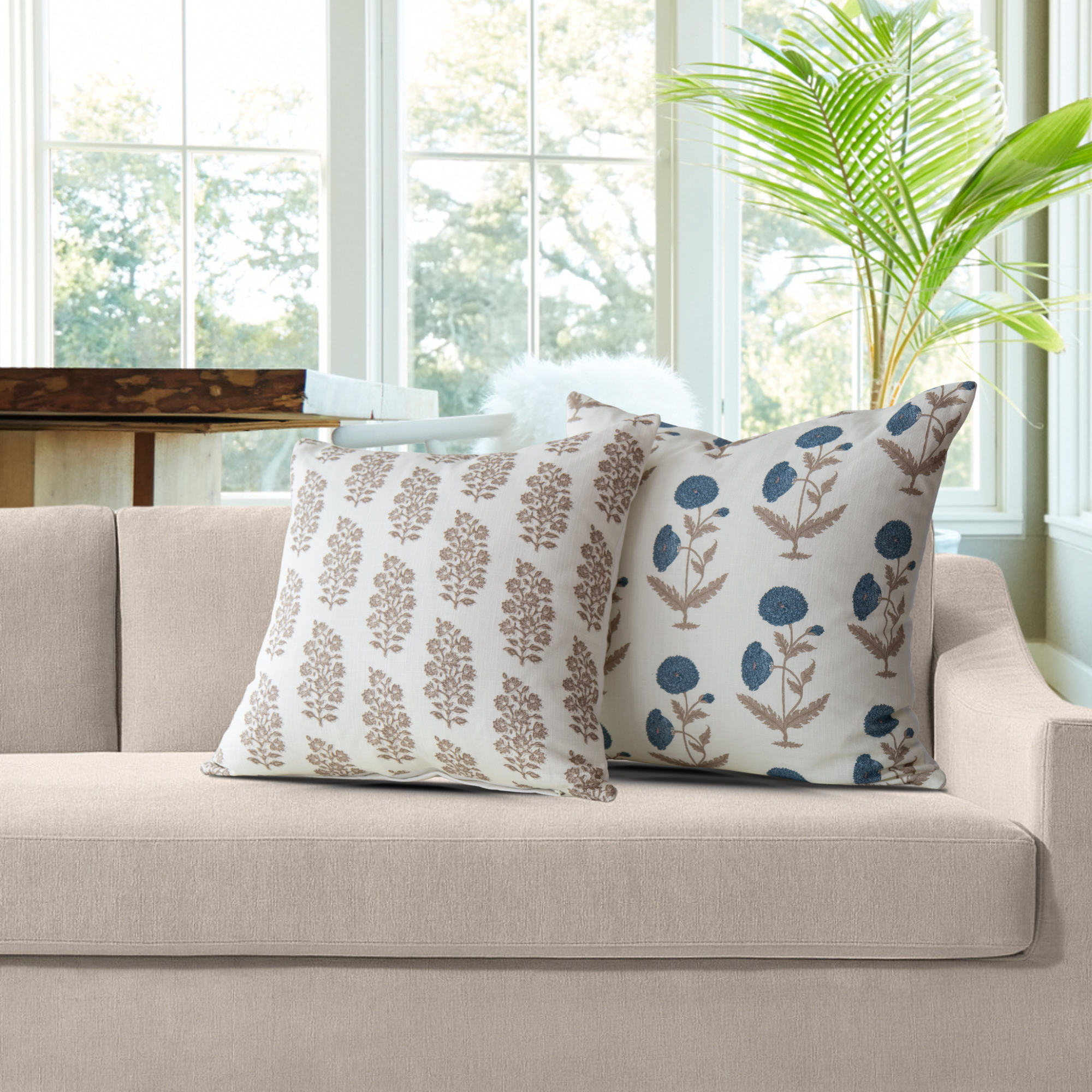 Our Daisy Blue Block Print Pillow Cover is part of a seaside-inspired lineup designed for effortless mixing, matching, and layering. Style it as a statement on a favorite chair, pair it with soft linen solids for understated elegance, or combine with tonal florals for a curated, collected look.