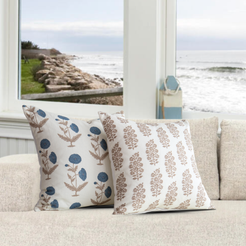 Our Daisy Blue Block Print Pillow Cover is part of a seaside-inspired lineup designed for effortless mixing, matching...