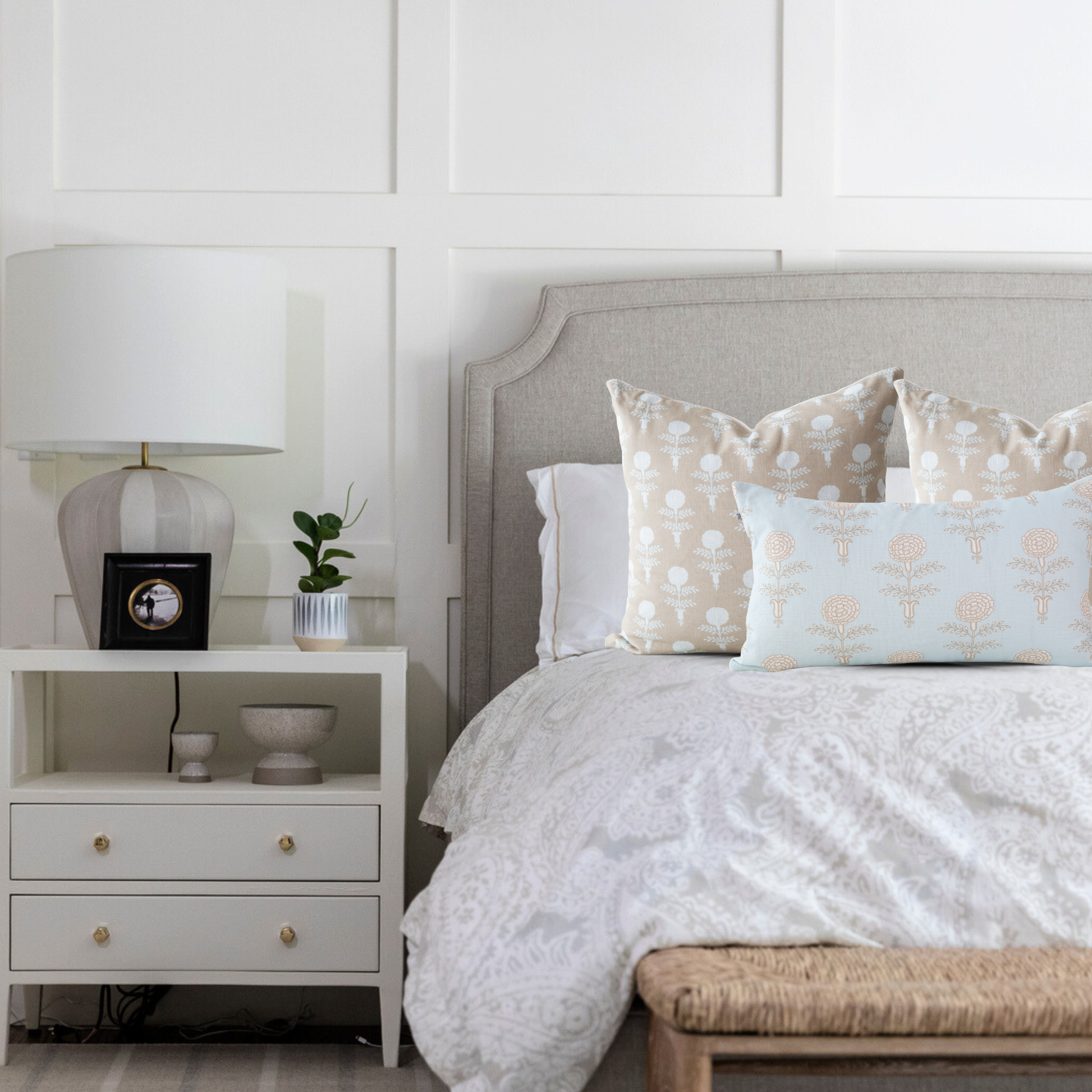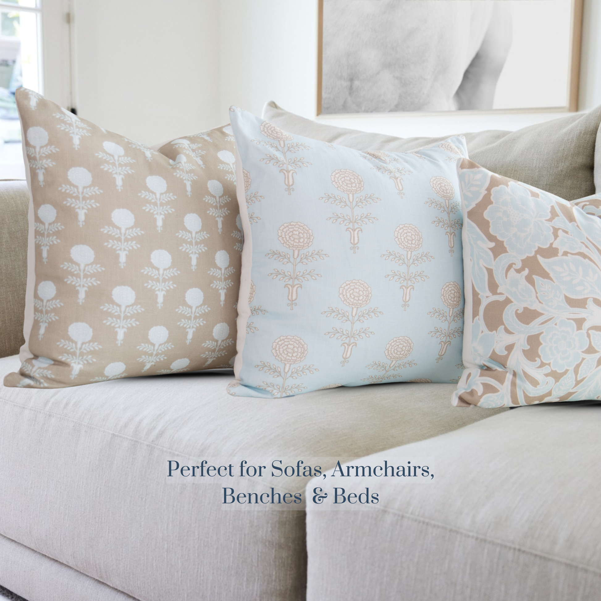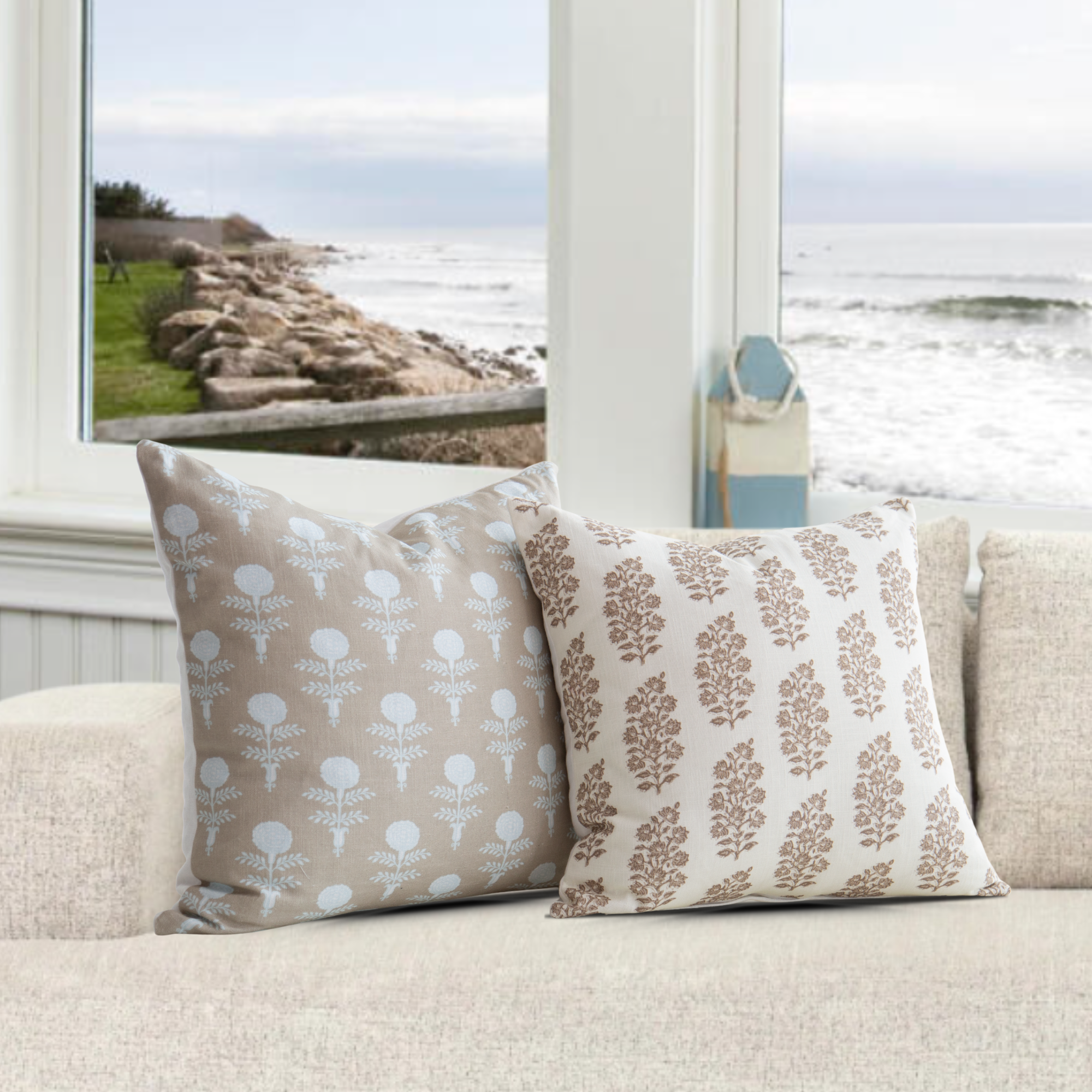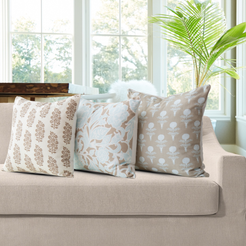 The Elodie Oyster Pillow brings quiet sophistication to any space with its block printed motif, rendered in soft oyster and ivory tones. Subtle yet striking, this design balances the romance of vintage florals with the freshness of coastal living, offering a versatile accent that feels both timeless and modern.