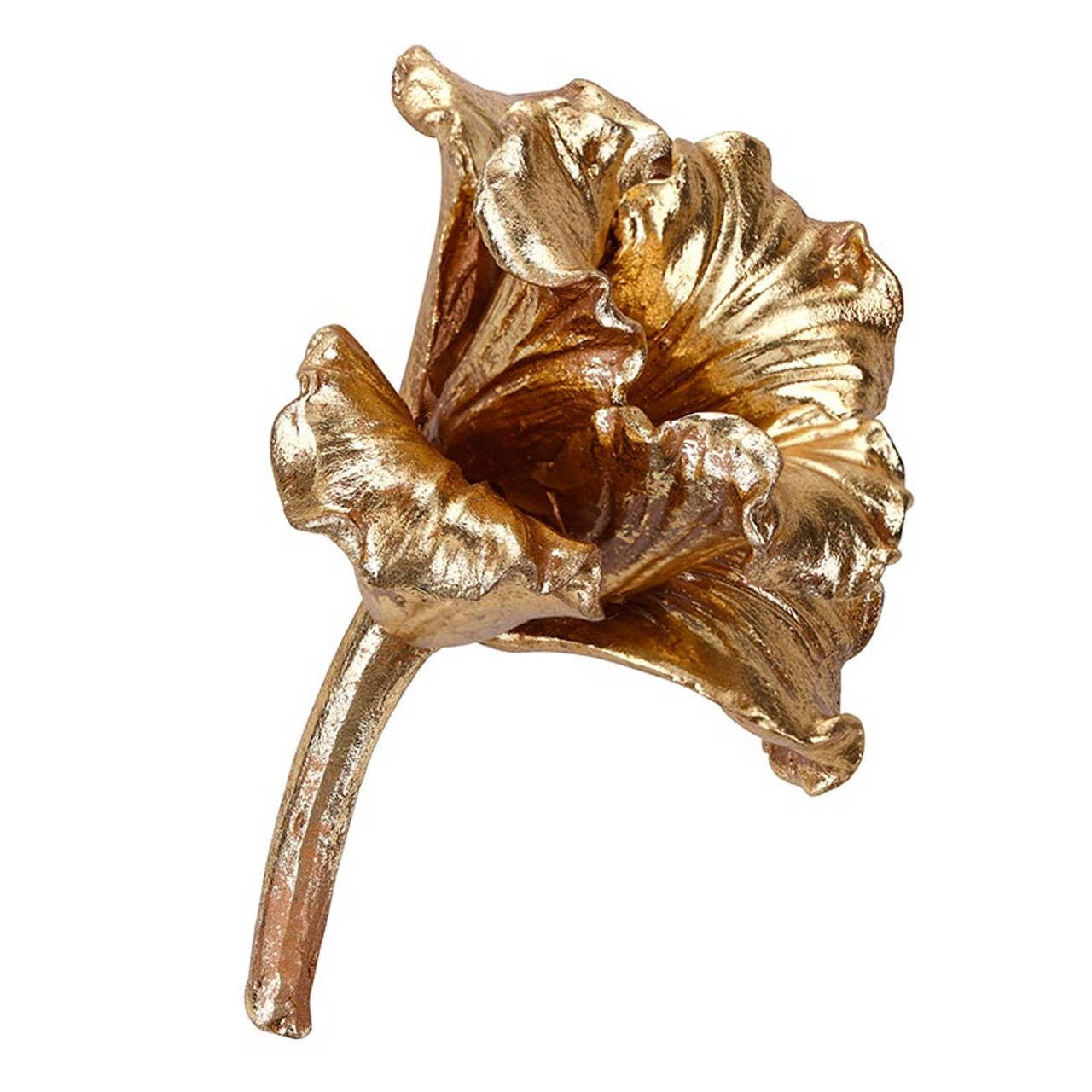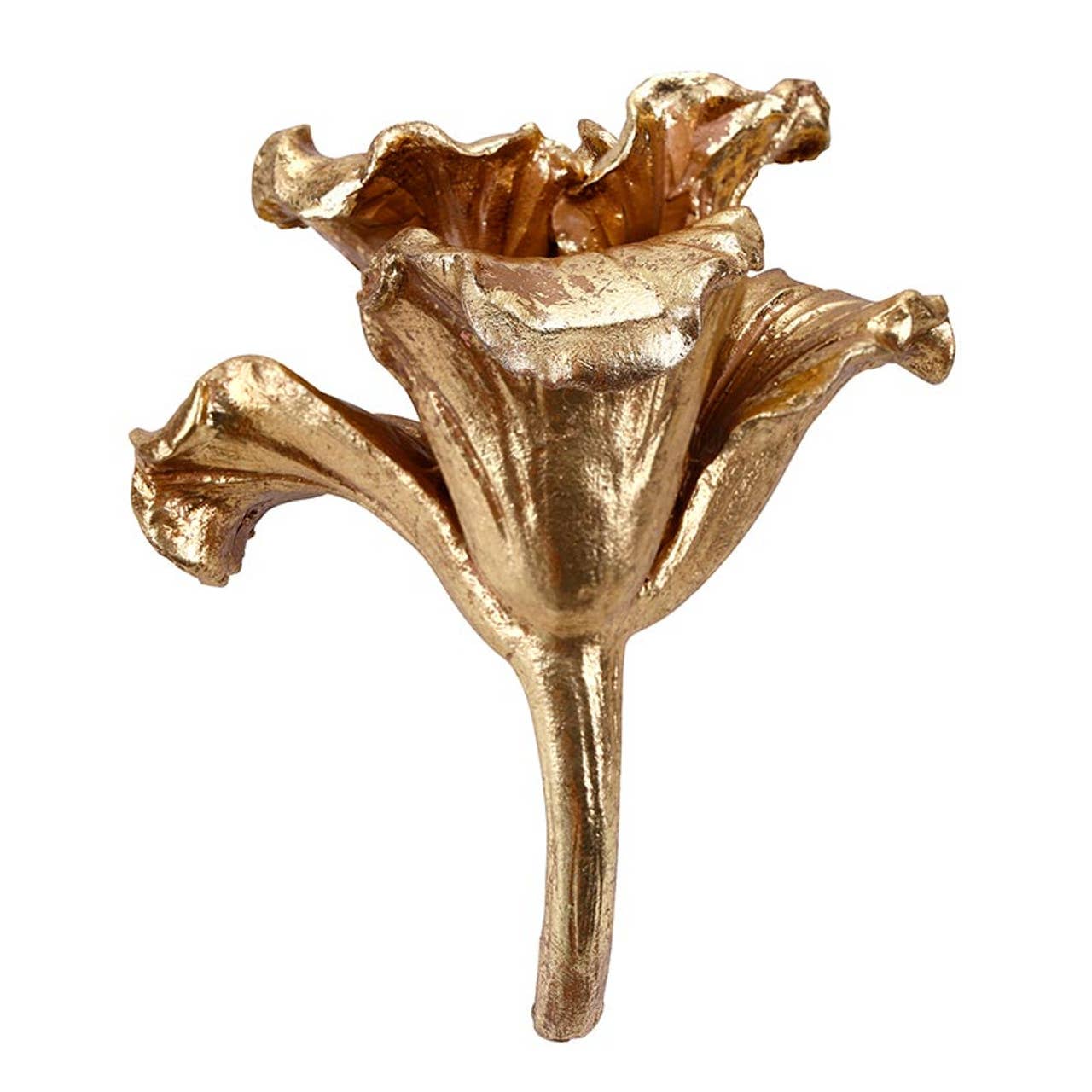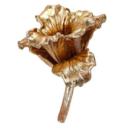 Golden Lily Accent brings a splash of botanical glamour to any room. This intricately sculpted lily features delicate, curved petals finished in rich gold that catches the light beautifully. Made from lightweight resin with a metallic sheen, it delivers that luxe metal look without the weight. Perfect for perching on shelves, tables, or tucking into seasonal displays, this charming accent adds a touch of nature-inspired elegance wherever it lands.