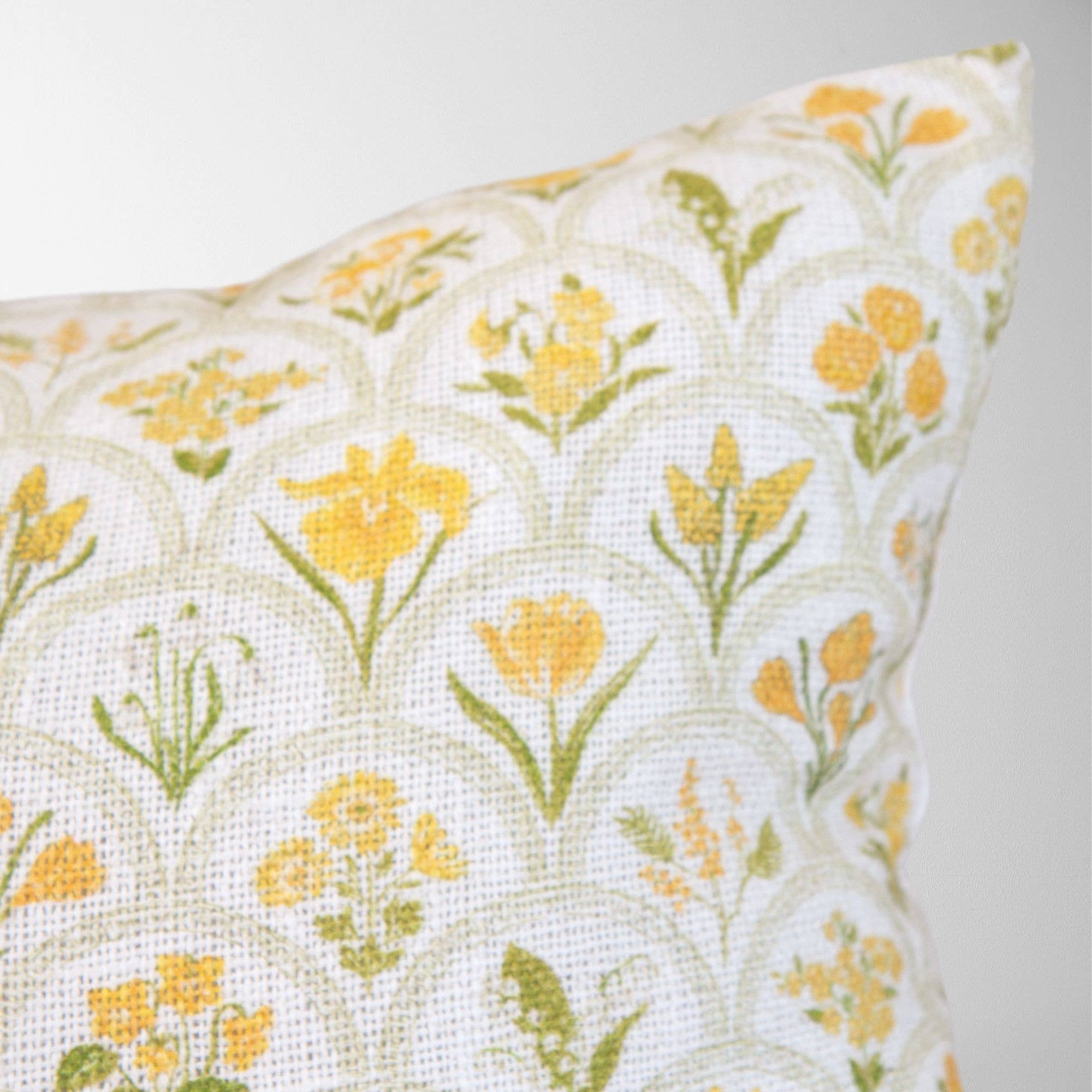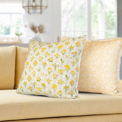 Fresh, sunny, and full of garden charm, the Harlow Garden Pillow is a beautiful way to bring the outdoors in. Its cheerful yellow floral block-print style design on a crisp white ground adds a warm, cottage-inspired touch to any sofa, chair, or bed. The soft textured fabric and delicate scalloped lattice background give it an artisan quality that feels both timeless and on-trend — a perfect accent for any space that could use a little sunshine.