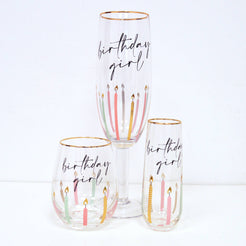 Make every birthday toast a little more special with our Birthday Girl Champagne Glass. Holding 8 ounces, this glass is perfectly sized for your favorite bubbly, allowing you to sip and celebrate in style. Featuring a delicate gold rim and a playful, birthday-centric decal, each glass is adorned with the phrase “Birthday Girl” alongside a colorful candle design, adding a festive, whimsical touch to any celebration.