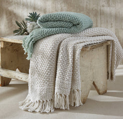 Experience the luxurious comfort of the Open Knit Throw. This throw's open knit design offers a unique, tactile appeal, perfect for adding a touch of elegance to any space. While it's a beautiful decor piece, it's also functional, providing warmth and coziness.