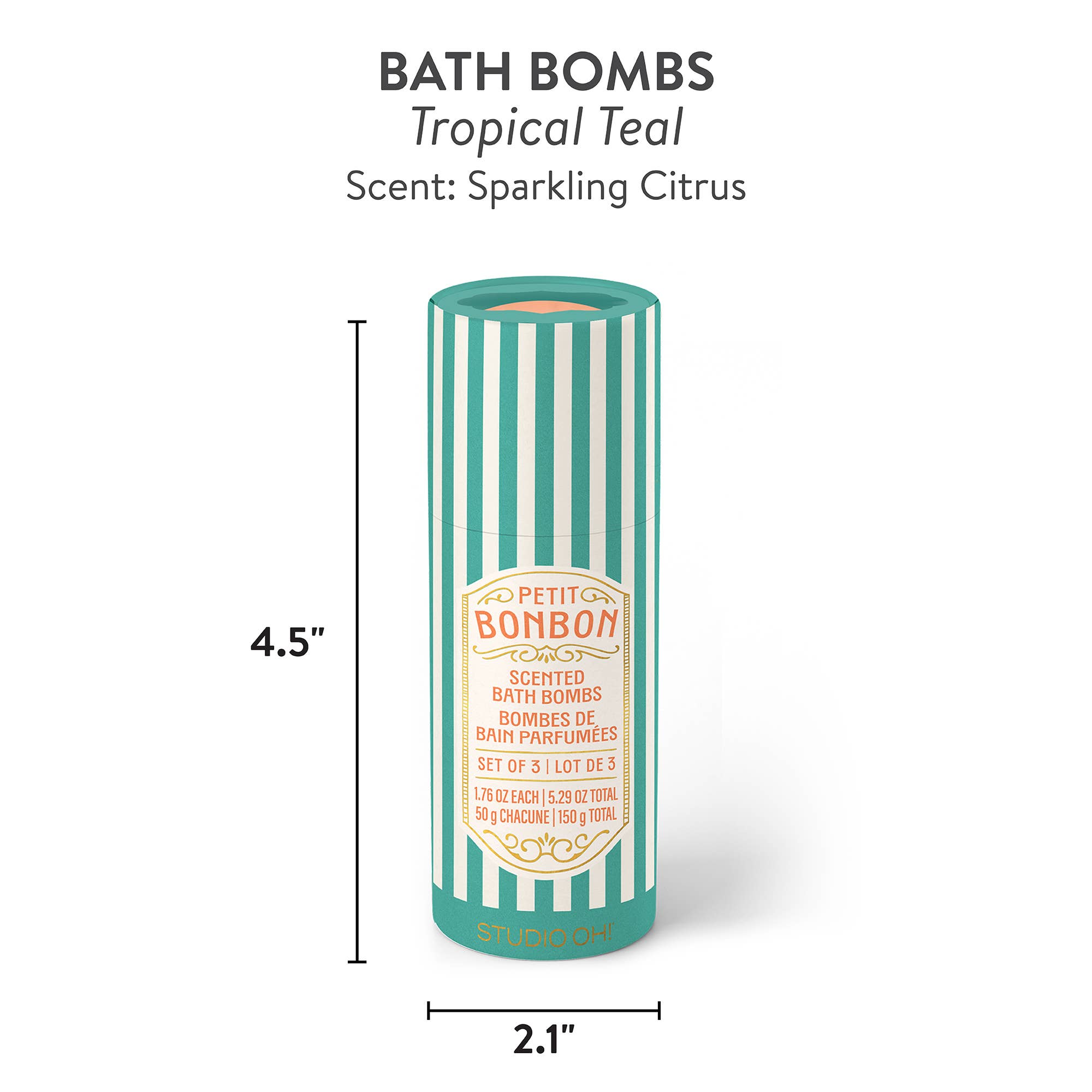 Transform bathtime into a spa-like experience with this charming trio of fizzy, fragrant bath bombs. Packaged in a confectionery-inspired paper tube with decorative foil embellishments—great for gifting to family, friends, coworkers, and beyond.