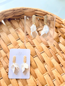 Catch the light with every turn of your head! These shimmery petal earrings dance delicately from your ears, featuring lustrous petals that sparkle with movement.