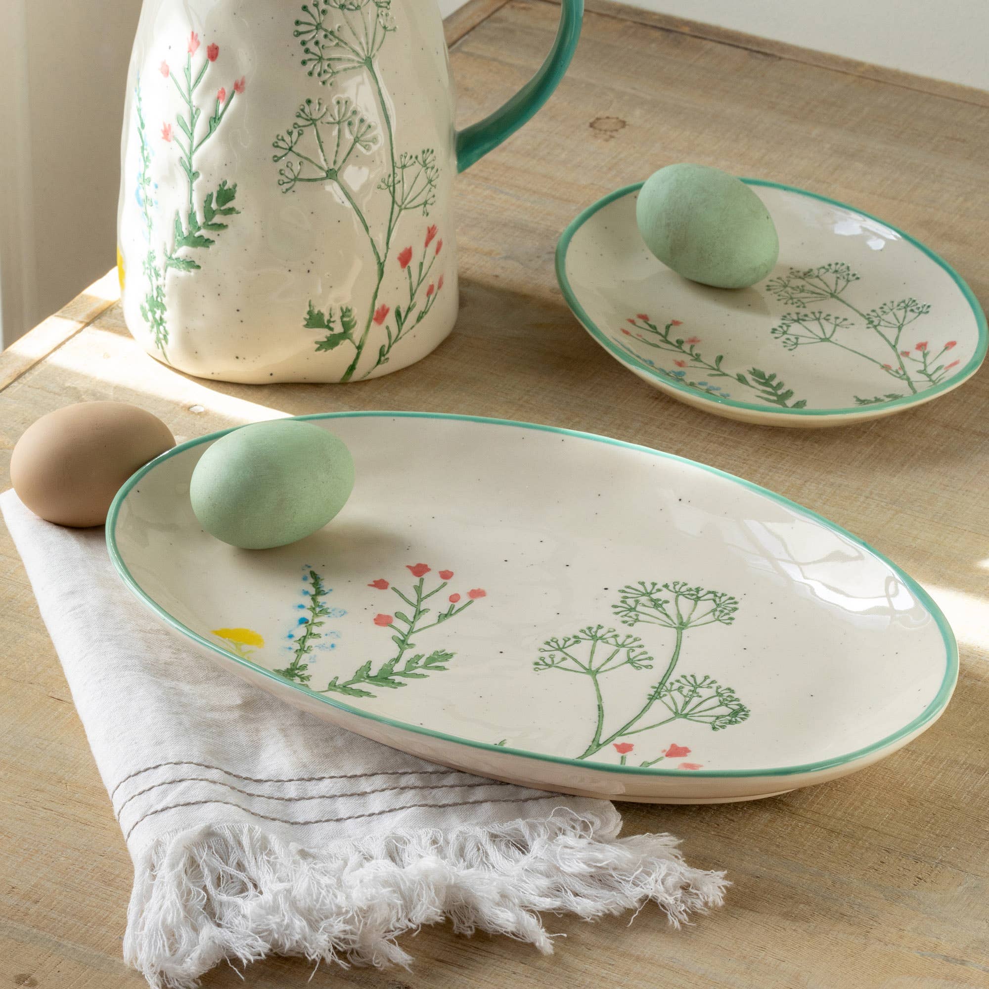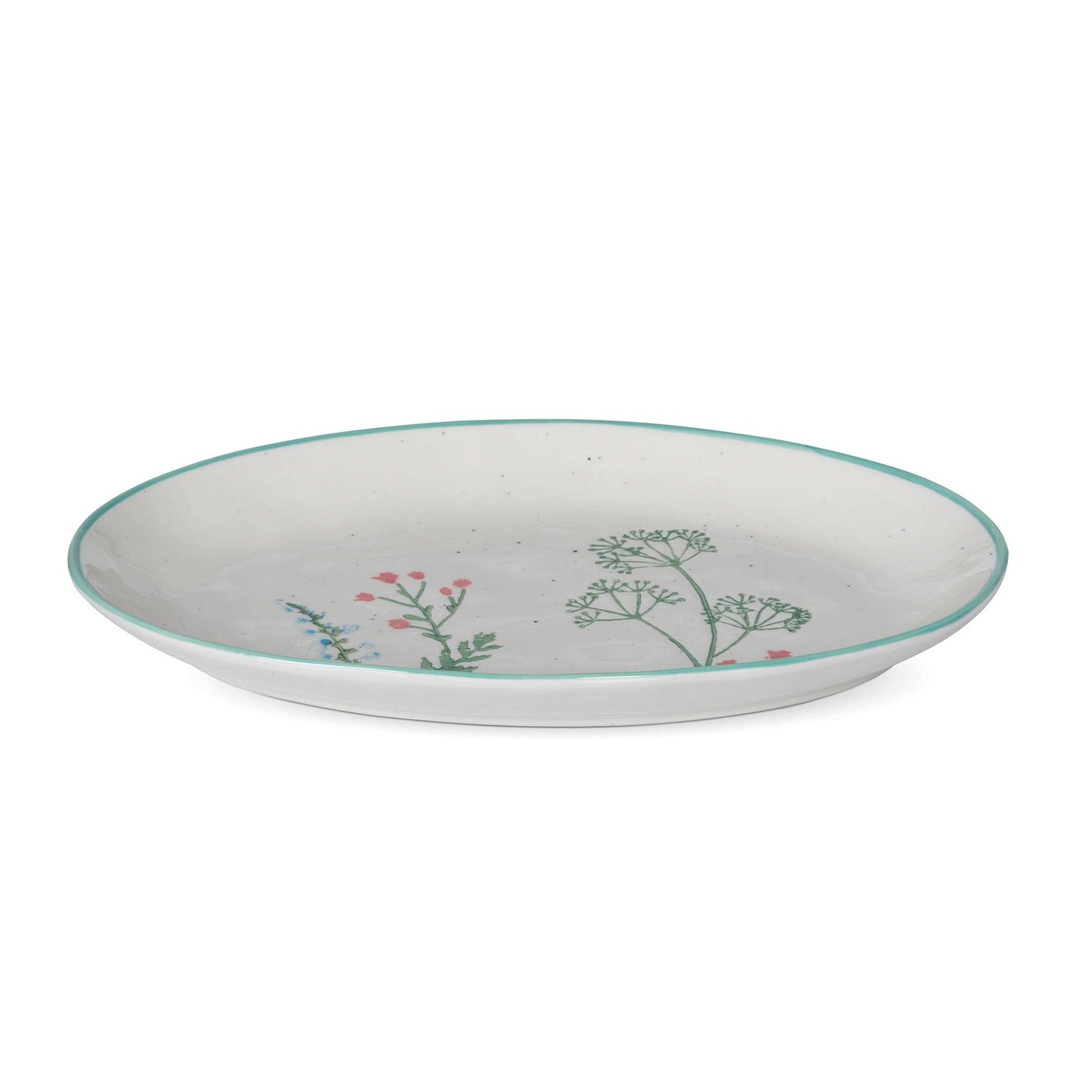 Fresh, charming, and full of botanical character, this Spring Wildflower Platter is a beautiful addition to any table. Featuring a delicate hand-painted style wildflower design on a speckled cream base with a soft teal rim, it's perfect for serving everything from appetizers to salads — or simply displayed as a decorative piece. Light enough for everyday use yet pretty enough for special occasions, it brings a touch of spring to your table all year round.