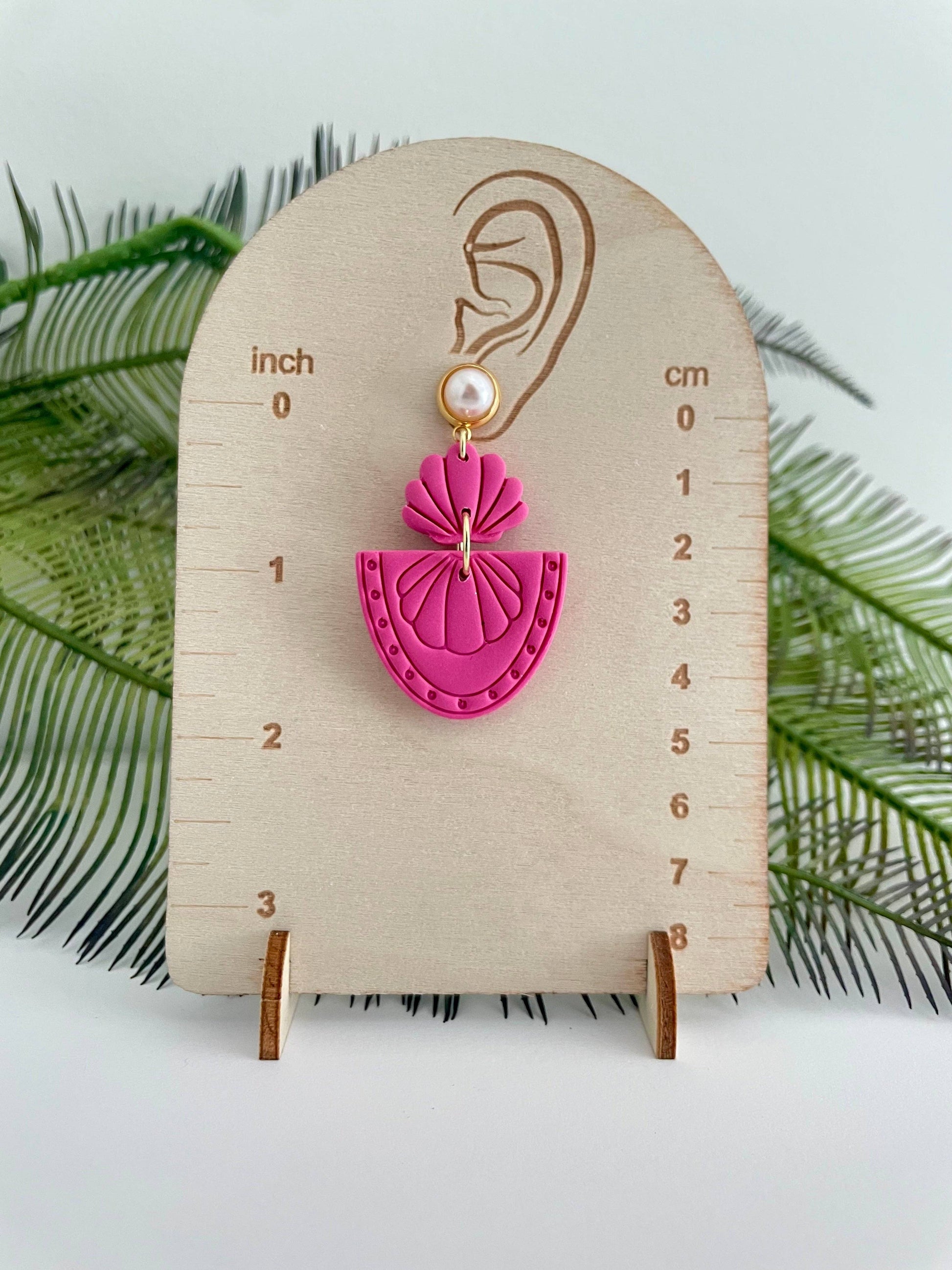 Pink summertime shells topped with a pearl. These elegant clamshell inspired earrings are perfect for a pretty pop of color for your outfit!