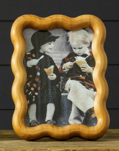 Display your favorite photos with flair in this playful wood frame. Its wavy edges bring a fun, organic vibe to any space while showcasing your cherished moments with natural warmth and character.