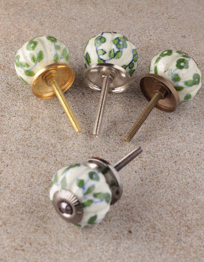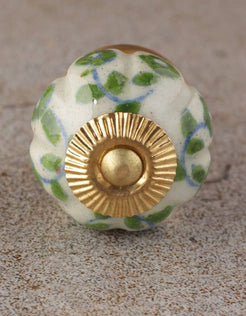 Add a touch of timeless elegance to your home with the White & Green Ceramic Melon Shaped Dresser Cabinet Knob . Crafted entirely by hand, this knob reflects the artistry and charm of traditional blue pottery, known for its intricate designs and natural aesthetic.