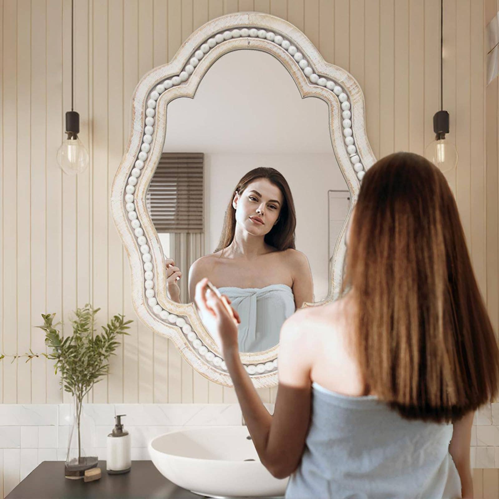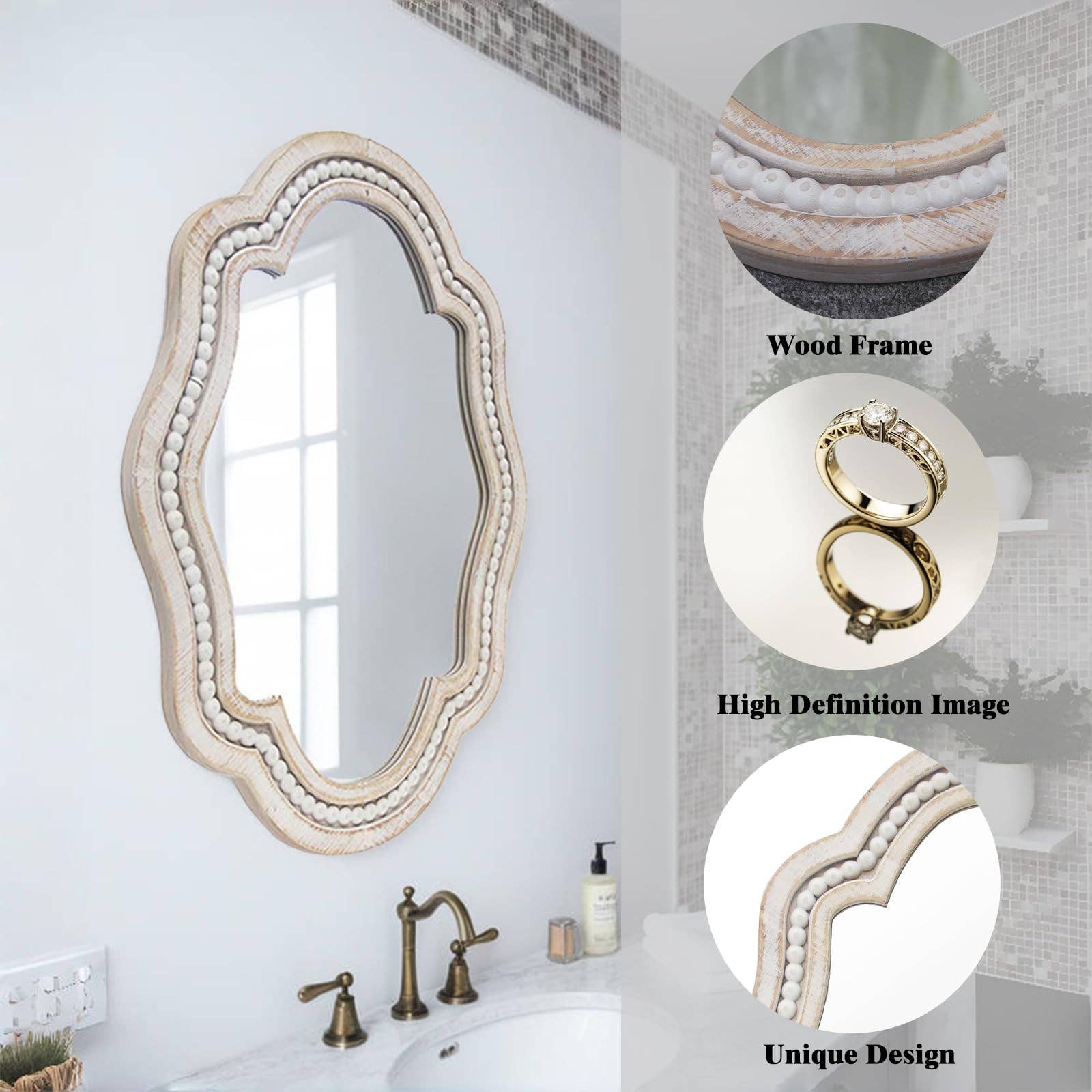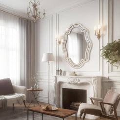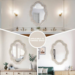 Add casual elegance and beautiful decor to your home with this unique wall mounted mirror. The decorative mirror will add a timeless sense of comfort to your dining room, living room, bedroom, entry, or bathroom.